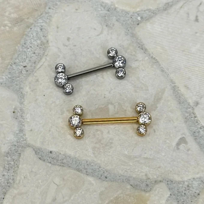 "Amy" er et piercingsmykke, som typisk bruges til en brystpiercing.